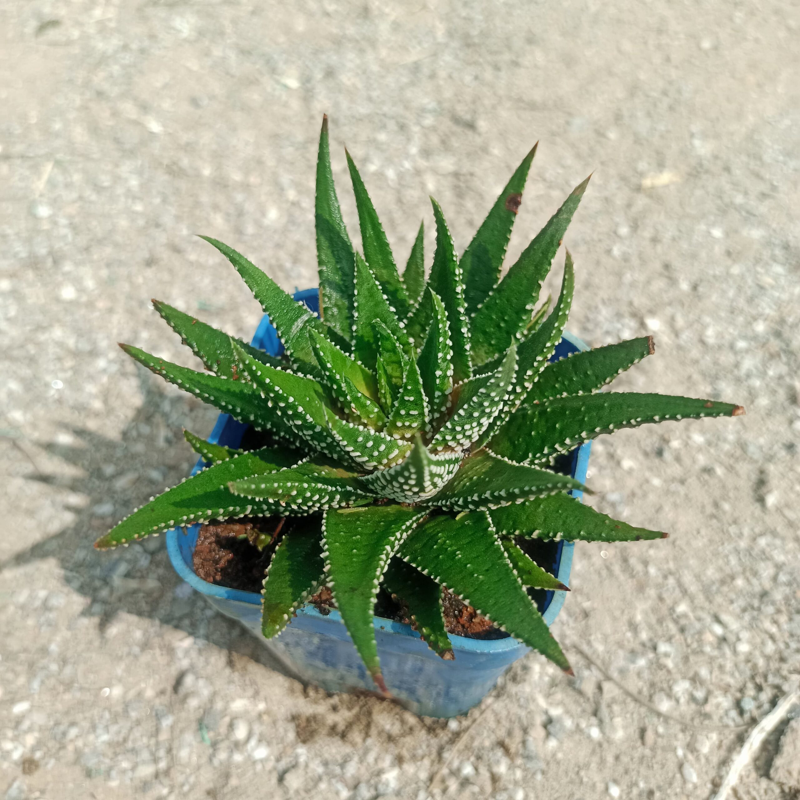Fasciated Haworthia is a unique and compact succulent known for its distinctive fan-shaped rosettes of thick, fleshy, green leaves that are marked with white, raised tubercles. Often called the “Zebra Haworthia” due to its striking markings, it thrives in low light conditions and is an excellent choice for both indoor and outdoor gardens.